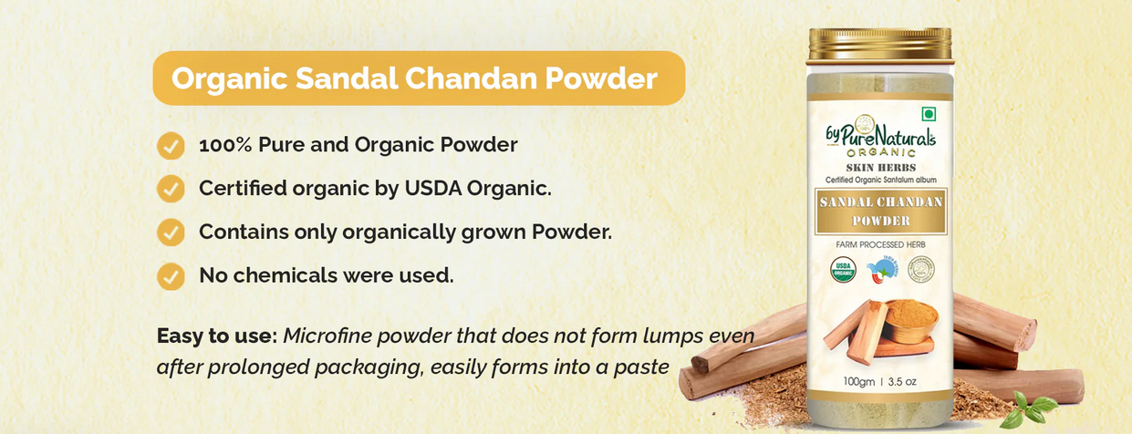 Experience the timeless luxury of pure sandalwood with byPureNaturals 100% Organic Chandan Powder, made from finely ground sandalwood bark to deliver its natural cooling and healing benefits. Revered in Ayurveda, this soothing powder helps brighten the complexion, reduce blemishes, and calm irritated or acne-prone skin.