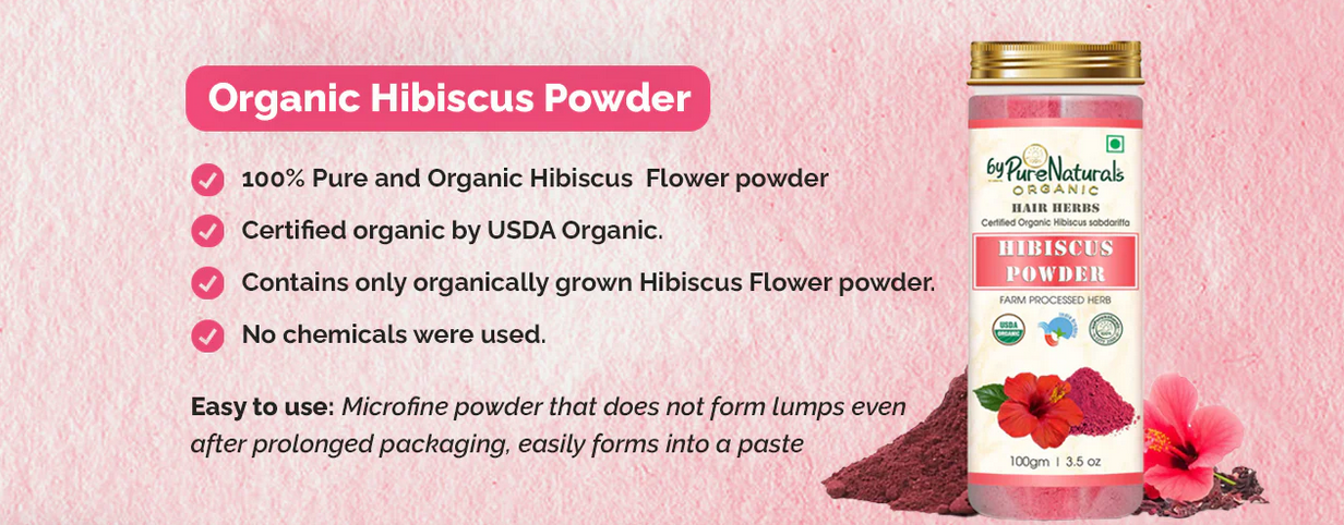 Revitalize your beauty routine with the floral power of byPureNaturals 100% Organic Hibiscus Powder. Sourced from sun-dried hibiscus petals and processed without any chemicals or additives, this nutrient-rich powder is a natural source of AHAs, antioxidants, and vitamins—ideal for both skin and hair care.