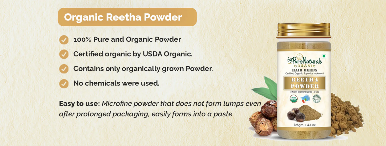 100% Organic Reetha Powder for Skin & Hair - 125 Gm