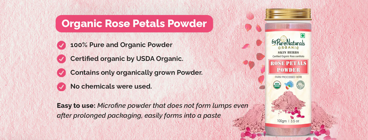 100% Organic Rose Petals Powder for Skin - 100 Gm