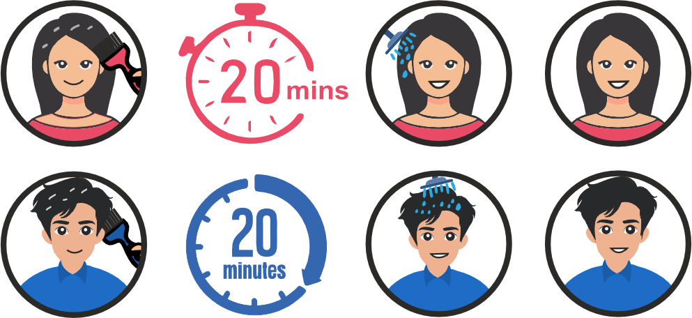 STEP 1 : Apply the Derma Gel Tint on your hair. | STEP 2 : Leave for 20 Minutes. | STEP 3 : Wash your hair with running water.